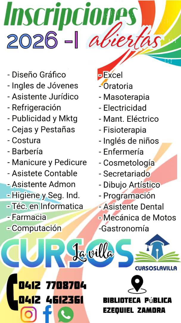 La Academia de Formación Técnica Cursos La Villa anuncia la apertura de su proceso de inscripciones desde este mes de noviembre en todas nuestras diferentes formaciones. ¡Aprovecha la oportunidad de capacitarte y obtener tu certificado avalado por la Zona Educativa!